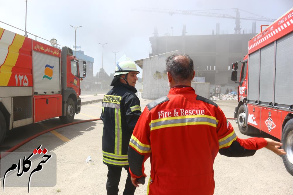 گزارش تصویری از تلاش آتش نشانان برای مهار آتش سوزی مجتمع ونوس منطقه آزاد انزلی